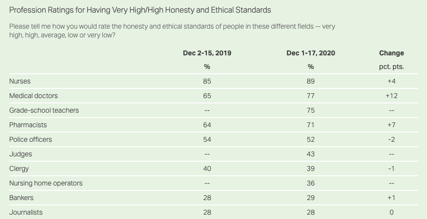 We’ve also seen that overall trust in religious leaders is declining. A recent Gallup poll showed that only 39% of Americans rate clergy as having very high/high honesty and ethical standards on a five-point scale.